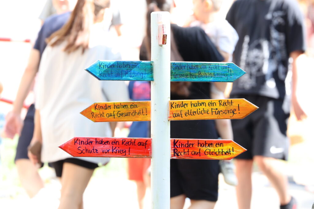 „Gemeinsam für Kinderrechte“ so lautet das Motto des diesjährigen Weltkindertages – ein Motto was nicht besser zum Kinderschutzbund und seiner Arbeit hätte passen können. Deshalb wurde am Gemeinschaftsstand der Kinder- und Jugendförderung an einer Wimpelkette mit Wünschen und Forderungen von Kindern gearbeitet. Diese Wimpelkette soll zukünftig „wandern“ und immer wieder einen neuen Platz dort finden, wo es wichtig ist auf Kinderrechte hinzuweisen – zum Beispiel im Rathaus.