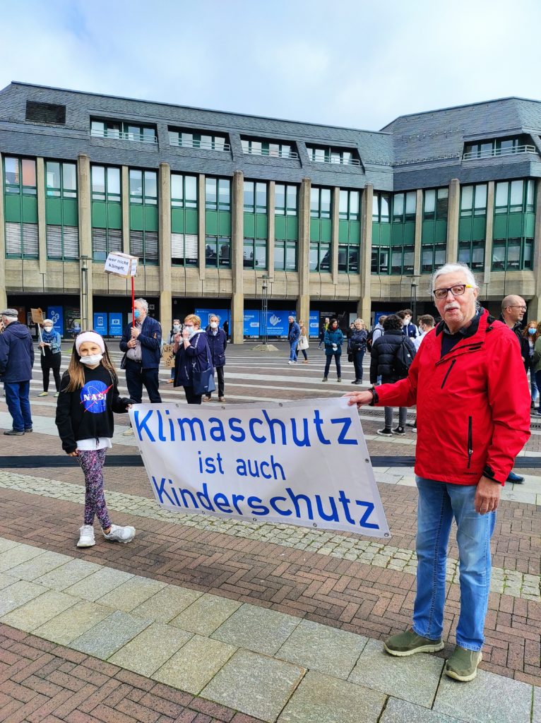 Am 24.09.2021 haben auch wir, zusammen mit dem Bündnis Remscheid, Greenpeace und anderen Organisationen – sowie Schülern, alten und jungen Bürger:Innen aus Remscheid, am globalen Klimastreik auf dem Rathausplatz in Remscheid teilgenommen. Zusammen mit seiner Enkelin hat unser Vorsitzender Karl-Richard Ponsar sichtbar darauf hingewiesen: Klimaschutz ist auch Kinderschutz