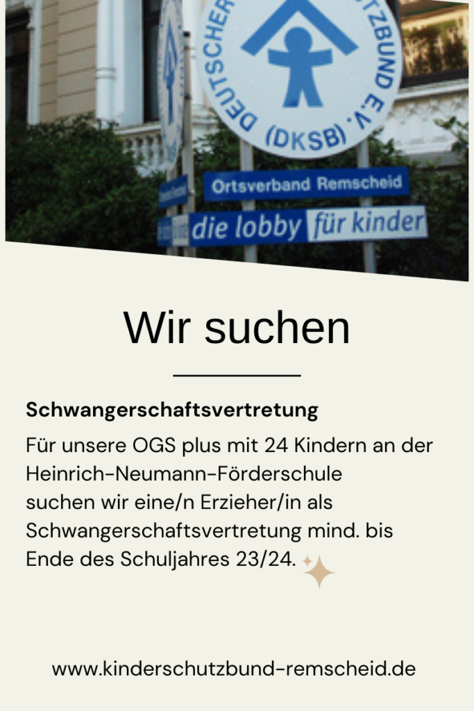 Bei Interesse schicken Sie Ihre Bewerbung an info@kinderschutzbund-remscheid.de oder rufen an unter Tel.: 02191-7820619